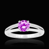 Bague Lina en or blanc palladié (4.7 gr) 18K, or jaune 18K (4.5 gr), or rose (4,5 gr) ou platine (5.90 gr). Pierre centrale saphir rose clair ou intense, 1 carat, 1,5 carats et 2 carats